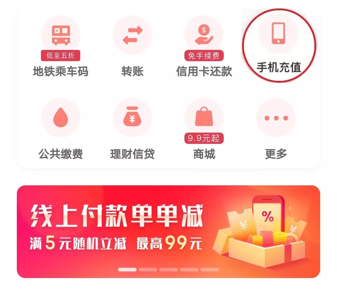 1. 打开云闪付APP首页,选择"手机充值"按提示进行缴费操作